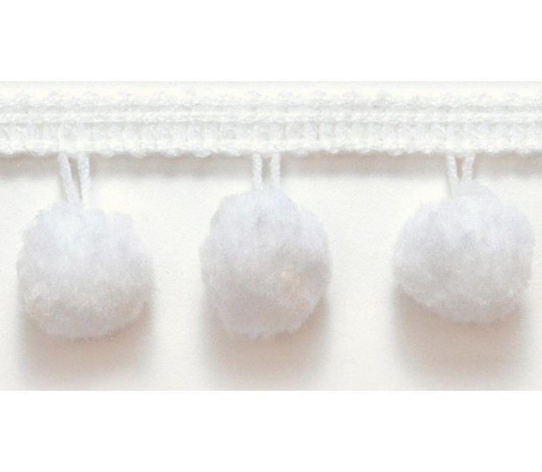 EL PRECIO EQUIVALE A 50CM. Trenza de pompones de 30mm de ancho, color blanco.