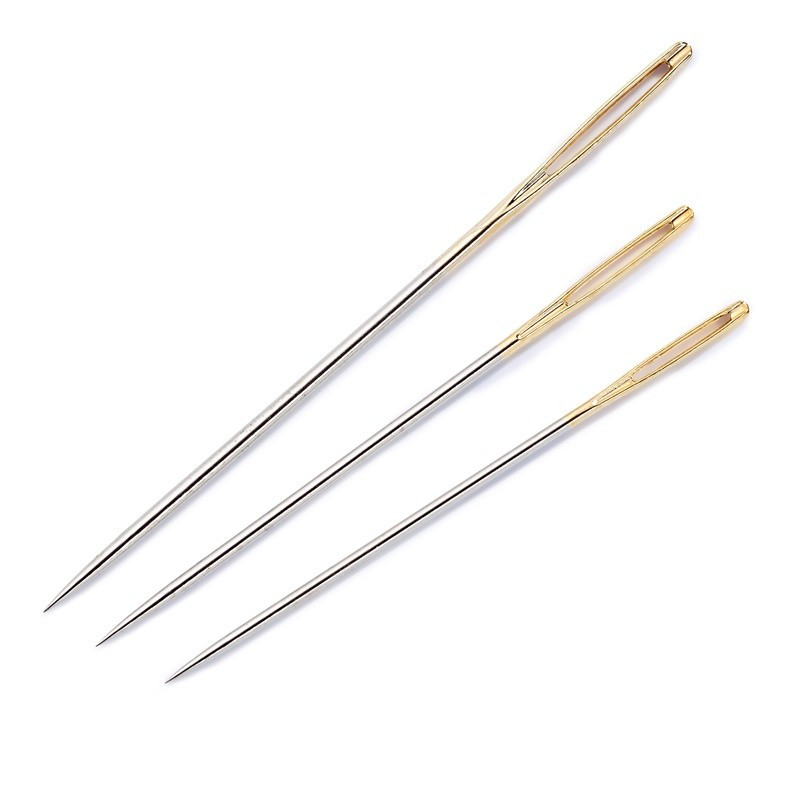 Las agujas de tripulación hechas de acero endurecido con un ojo de aguja dorada son especialmente adecuadas para el bordado fino y la costura. Las agujas tienen la típica forma cónica y delgada de una aguja de coser a mano y tienen un ojo relativamente grande, lo que hace que el enhebrado en general sea más fácil a mano. La superficie cubierta lisa y no porosa asegura que la aguja se deslice fácilmente a través de la tela. La gama de agujas de crewel incluye números de tamaño del 3 al 9 y, por lo tanto, ofrece la aguja adecuada para cada requisito al bordar. Prym también tiene dos juegos ordenados de agujas de bordado especiales en los números de tamaño 3-9 y 5-10. Todos los paquetes contienen 16 agujas.