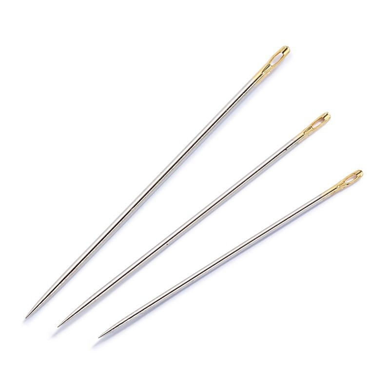 Estas agujas de coser a mano, largas y medias, están hechas de acero endurecido y tienen un ojo dorado en relieve sin rebabas. Su forma de punta fina y pulida, junto con la superficie lisa y no porosa, recubierta, puede deslizarse bien a través de todo el material. La firmeza del resorte sintonizado garantiza un funcionamiento suave sin doblarse ni romperse, incluso con las mejores agujas. La cabeza de la aguja tiene una forma tal que las agujas se pueden insertar sin esfuerzo, incluso sin un dedal. En términos generales, las agujas de coser largas a mano son aprox. 7 mm más largo que las agujas de longitud media correspondientes y se utilizan para todos los trabajos de costura convencionales. Muchos consumidores prefieren las agujas largas debido a su mejor agarre. A diferencia de, las agujas de longitud media a menudo son seleccionadas por usuarios experimentados para un trabajo de costura más elaborado y son populares debido a su velocidad de perforación más rápida. Prym ofrece estas agujas de coser a mano en un diseño largo y mediano con un ojo dorado en muchos paquetes clasificados individualmente y paquetes surtidos en tamaños no. 1 a no. 11.
