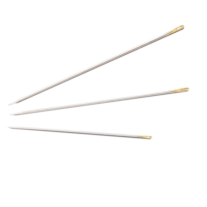 Las agujas de sombrerería son comparativamente más largas que las agujas de coser a mano convencionales y son excepcionalmente adecuadas para coser materiales más firmes, como en la confección de trajes y sombrerería. Debido al hecho de que los puntos generalmente deben aplicarse de la manera más invisible posible, esta aplicación requiere una aguja fina y larga. Estas agujas están hechas de acero endurecido y tienen un ojo dorado o plateado en relieve sin rebabas. Su punta fina y pulida y su superficie uniformemente revestida se deslizan bien a través del material, mientras que la rigidez equilibrada del resorte asegura una elasticidad ideal de uso. El surtido de Prym lleva agujas de sombrerería como un paquete de 16 unidades en un paquete de cartón en tamaños no. 5-10 con un ojo dorado y también como un sobre con 25 unidades cada uno en tamaños no. 7 y 9 con un ojo de plata.
