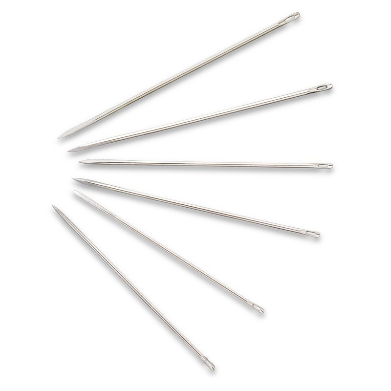 Las agujas de cuero hechas de acero endurecido en tamaños 3, 5, 7 y 9 son las más adecuadas para el procesamiento de cuero. Las agujas y su punta triangular facilitan su inserción en el material de cuero y, además, evitan que se rasguen. Las agujas de cuero o de guantera están disponibles como surtido en paquetes resellables de 6 o para peletería profesional en 4 tamaños ordenados de 25 unidades cada uno.