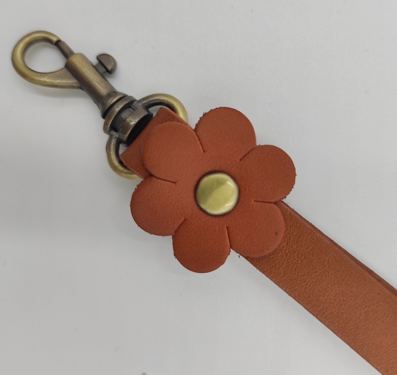 Cose la anilla al bolso o cartera y une el mosquetón. Podrás colocarla o retirarla siempre que lo necesites.