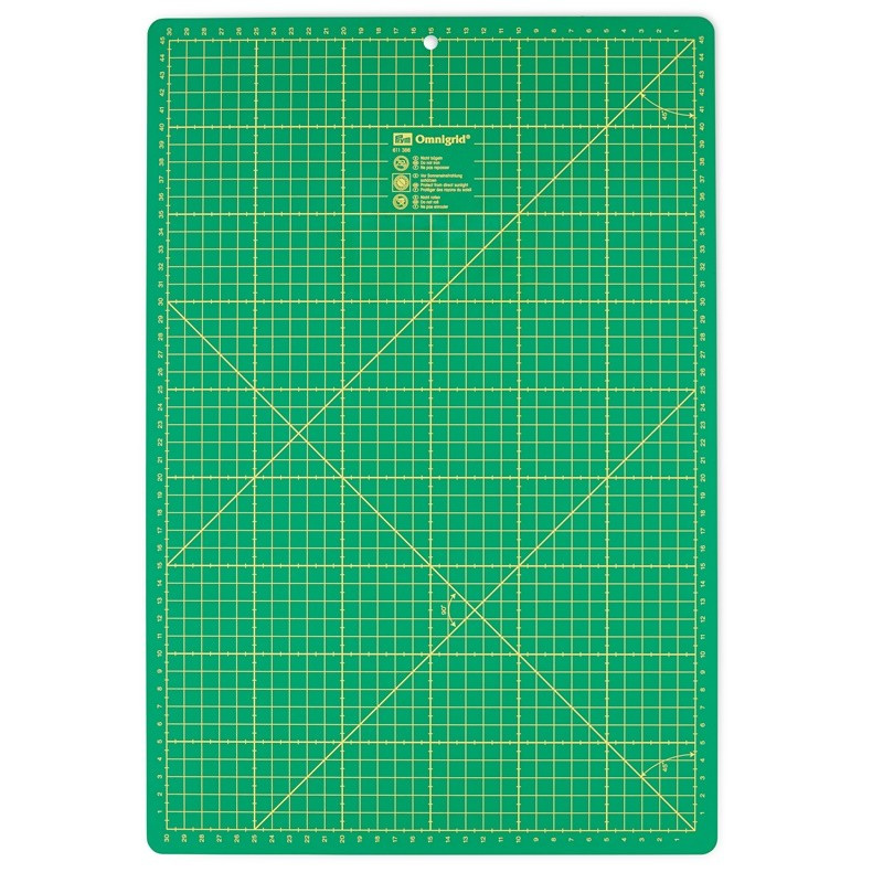 La estera de corte es la base ideal para cortar telas con la cuchilla giratoria. La estera de corte especial es tan suave que no dana la cuchilla giratoria, pero tambien es tan firme que los cortes no son demasiado profundos y la superficie de trabajo esta protegida contra danos. Al mismo tiempo, es perfecto para medir telas porque la parte delantera de la estera de corte esta impresa con una escala de cm y la parte posterior con una escala de pulgadas. Esto es conveniente para usar patrones en ingles sin tener que convertir las medidas. Cuando se utiliza correctamente, el material plastico resistente de la estera de corte garantiza un alto grado de seguridad contra roturas y astillas.