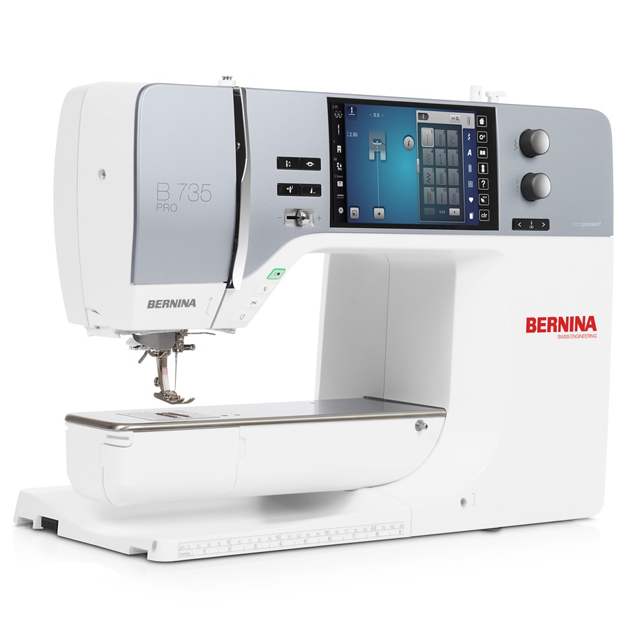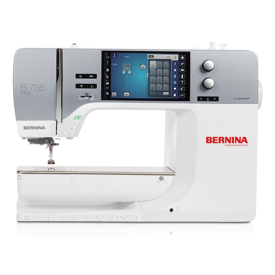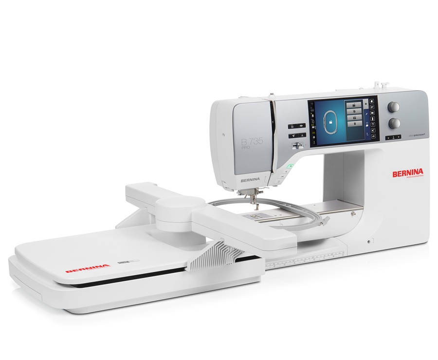La Bernina 735 Pro con Unidad de Bordado combina costura de alta precisión con un sistema de bordado avanzado.