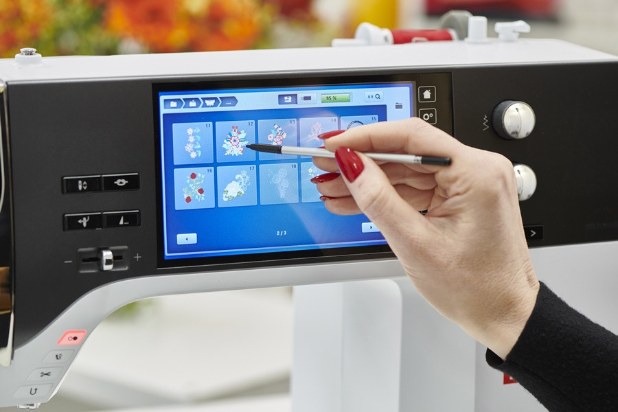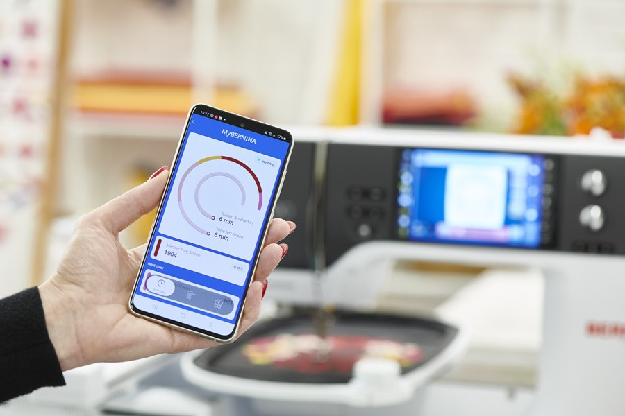 Gracias a la conectividad wifi de la B790 Pro puedes transferir diseños de/al software V9, y con la nueva aplicación de puntadas BERNINA el proceso de bordado se puede controlar de forma remota en tu smartphone.