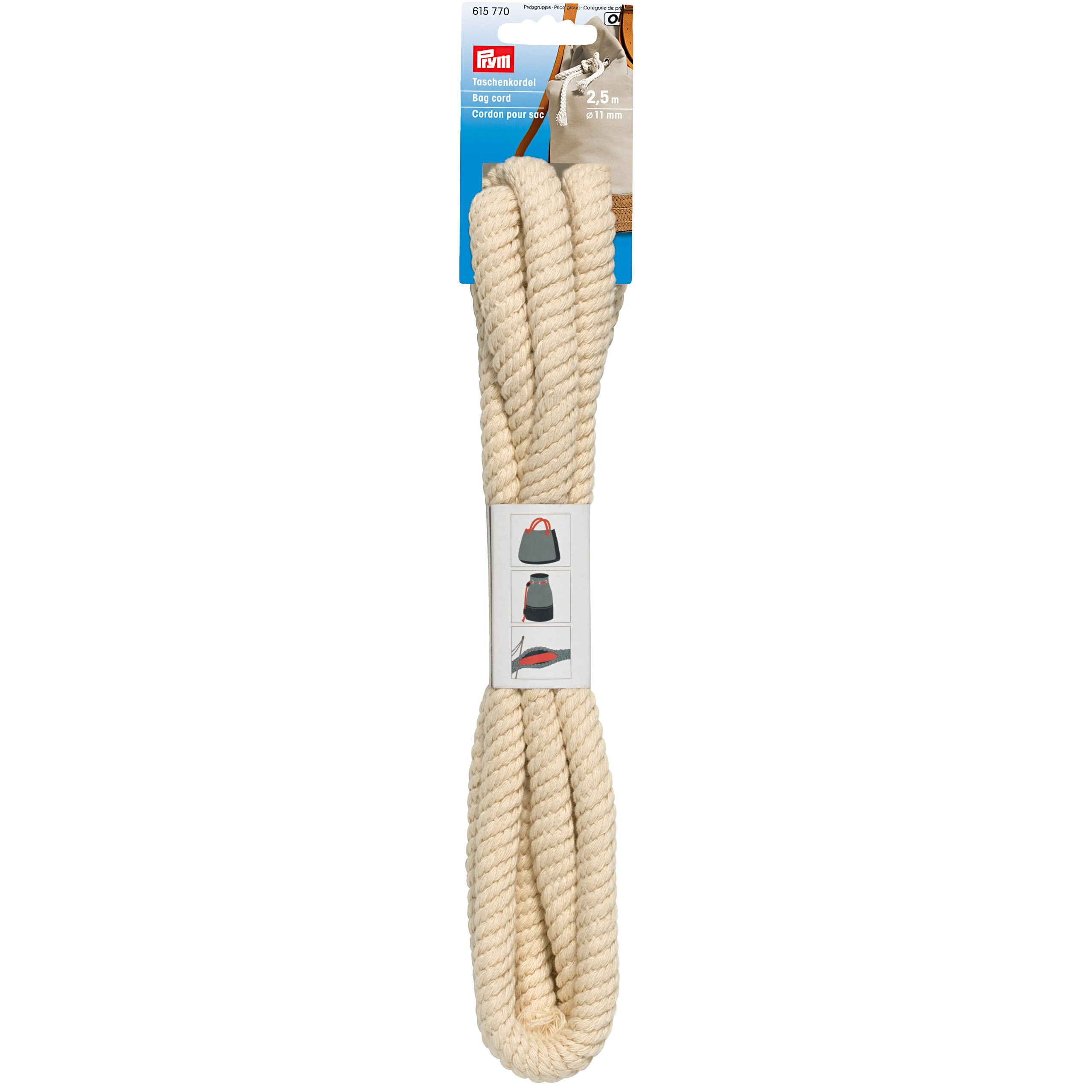 Este cordón de bolso blanco puro, hecho de 100% algodón, es ideal para hacer correas de hombro personalizadas o como una correa de cierre para bolsos y carteras. Su material de algodón se convierte en sí mismo varias veces, por lo que le da un alto nivel de estabilidad y resistencia a la tracción. Este cordón de algodón es versátil de usar y adecuado para todas las ideas artesanales. Pueden doblarse si es necesario o coserse a otros materiales. El cordón de la bolsa tiene un diámetro de 11 mm y una longitud de carrera de 2,5 m. Se puede lavar hasta 30 grados.