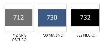 732 Negro, 730 Marino, 712 Gris Oscuro