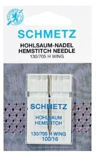 Con asta de aguja ensanchada con pequeñas aletas que presionan las fibras del material lateralmente para costuras decorativas y pespuntes decorativos de calado con tejidos livianos.