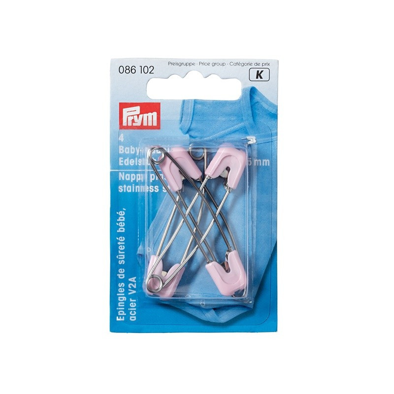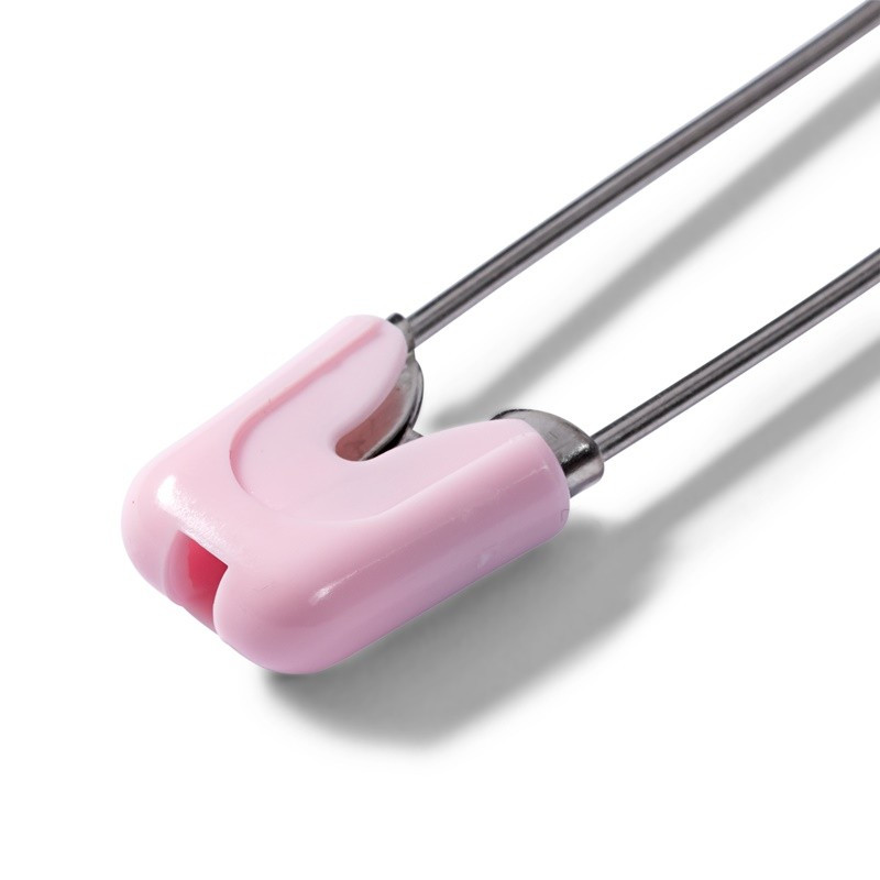 Cualquier persona que tenga hijos sabe lo desagradable que es sujetar a los mamelucos, pañales de tela o similares con alfileres de seguridad. Para asegurarse de que los pasadores no se abran involuntariamente, Prym ofrece los pasadores de seguridad para bebés con doble cierre para este caso. Una tapa de plástico sobre la cápsula de sellado también bloquea el pasador de acero inoxidable de alta calidad y solo puede soltarlo cuando se levanta la tapa. Los pasadores con bloqueo de seguridad para niños están disponibles en rosa, azul claro y blanco. Ambos ejes de los pasadores están ligeramente curvados hacia una dirección para mayor comodidad de uso. Esto los hace un ajuste ideal para las curvas de su cuerpo.