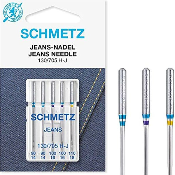 Se puede emplear para denim (jeans), cuero artificial, tela encerada y tejidos gruesos y duros.