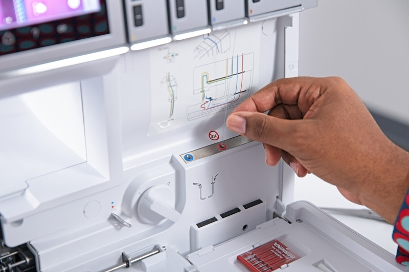 - Enhebrador por aire en un paso de BERNINA (para enhebrar áncoras)