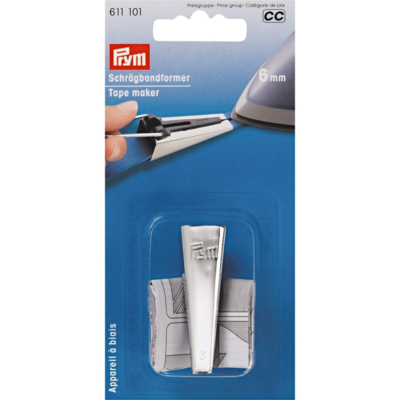 El práctico fabricante de cintas Prym hace posible formas perfectas de cualquier longitud de unión sesgada, para unir bordes de telas o colchas de retazos. Al cortar la tira de tela en un ángulo de 45 grados con el grano de la tela, la unión de polarización es elástica y se puede procesar perfectamente incluso en curvas. Después de cortar y unir las tiras de tela, se introduce el material y se tira a través de la abertura ancha del fabricante de la cinta. En el lado plano de la ayuda útil, se puede extraer la unión de polarización perfectamente plegada y se puede alisar directamente con la plancha. . Por lo tanto, hacer el enlace de sesgo es rápido y confiable y se puede enrollar fácilmente para un uso posterior.