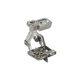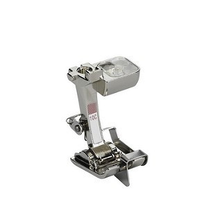 Este prensatelas con guía es excelente para pespuntear bordes, dobladillos y pliegues; ideal para coser por encima puntillas o cintas, así como para reforzar cantos. Con la guía se consiguen puntadas y dobladillos perfectos que discurren en paralelo al borde.