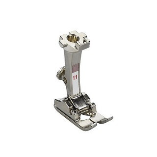 Este prensatelas es perfecto para coser y pespuntear con cordoncillo como hilo superior, coser muestras Sashiko y similares. La ranura de 2mm de profundidad en la parte inferior del pie permite el transporte uniforme del tejido.