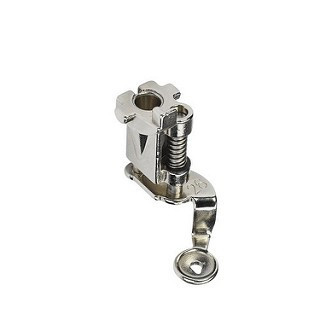 Este prensatelas, combinado con una placa de aguja de puntada recta, se utiliza fundamentalmente en labores de bordado con el módulo para bordar y para el zurcido de tejidos finos. El agujero para la aguja en forma de gota y la forma de la suela del pie evitan el deterioro del hilo superior y proporcionan un bonito resultado de bordado.