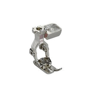 El prensatelas es excelente para labores de patchwork con añadidos de costuras de 3mm(1/8 pulgada) o 6mm (1/4 pulgada). Las tres muescas dispuestas lateralmente ofrecen una orientación precisa para realizar labores de patchwork angulares.