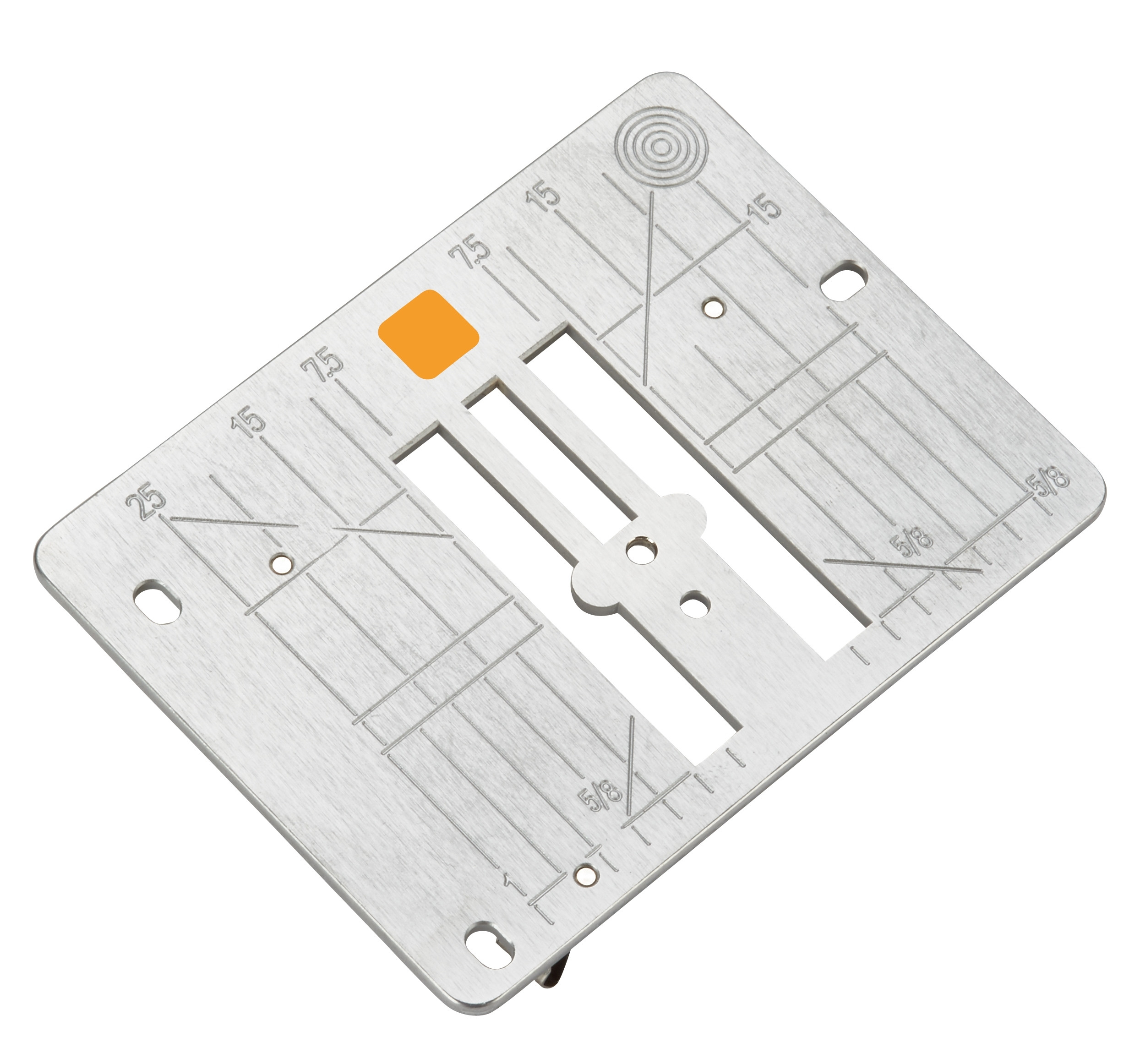 La placa de aguja de puntada recta y Cutwork tiene una marca naranja.