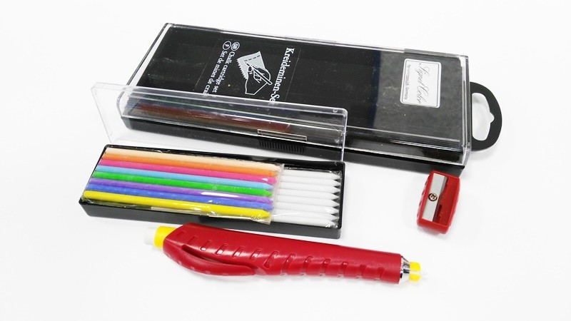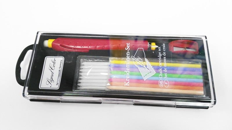 Set de Portaminas con varios colores de tizas incluida blanca y sacapuntas para afilar la mina. Con este set de portaminas y minas de colores, puedes marcar cualquier color de tejido y cuando la mina no este afilada con su sacapuntas incluido puedes tener la mina en perfectas condiciones.