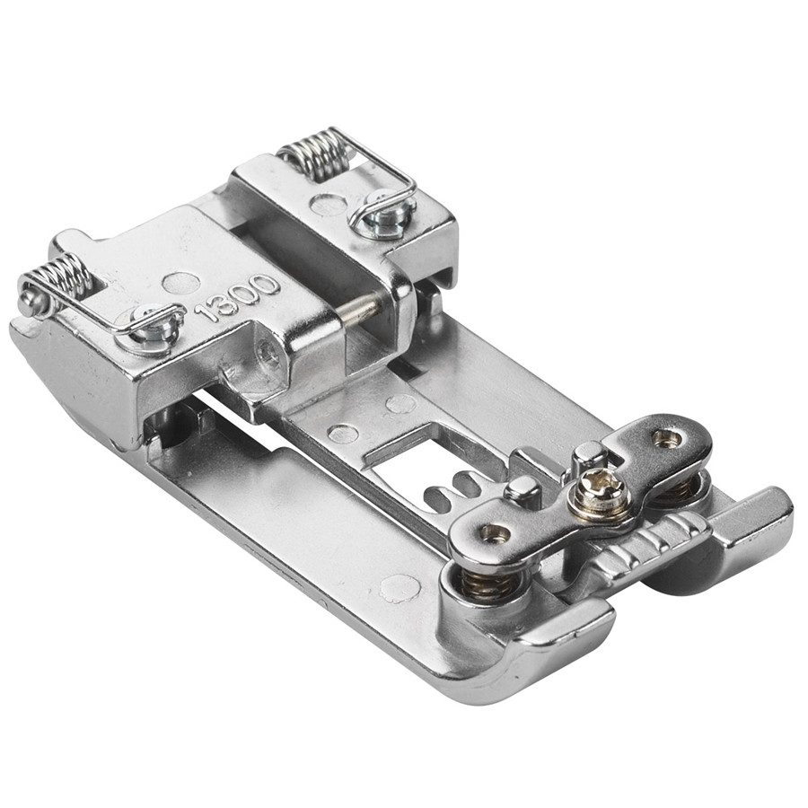 Para costuras, dobladillos, ribetes y costura decorativa con remallado o cadeneta a lo largo de capas de telas desiguales. Los cantos laterales del prensatelas con muelles guían la tela al ribetear cintas, realizar dobladillos con cinta elástica o pespuntear bordes estrechos.