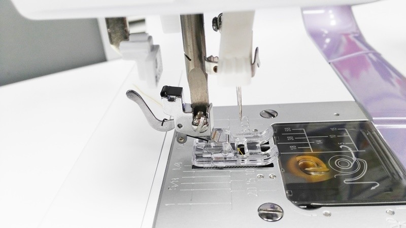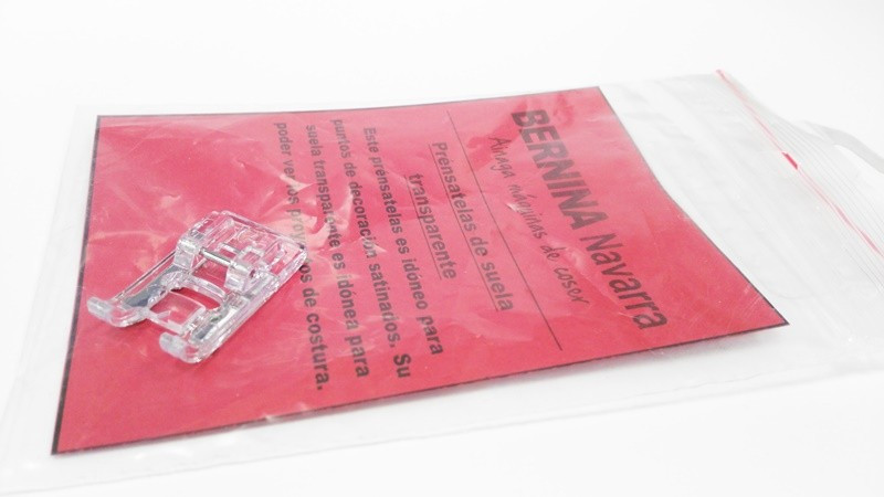Este prensatelas es idóneo para puntos de decoración satinados. Su suela transparente permite ver los proyectos de costura mientras se realizan.