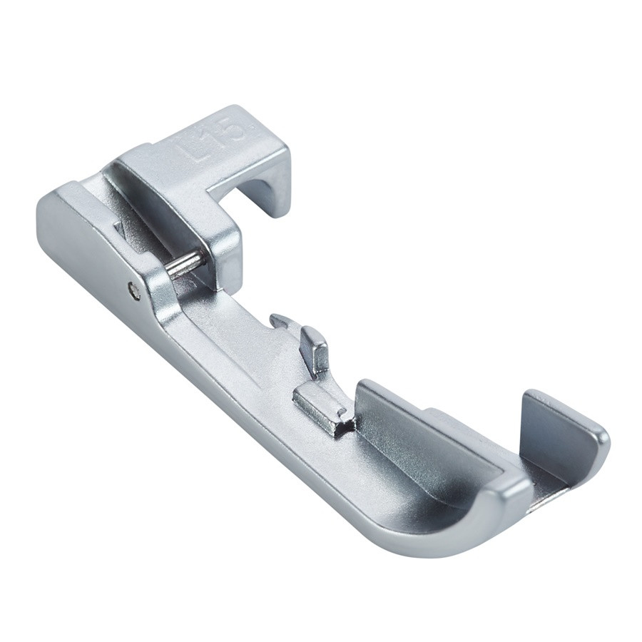 Se utiliza para crear una bonita terminación al borde de la tela o a lo largo de costuras decorativas planas. La hendidura en la parte inferior del prensatelas y el canal de guía lateral sujetan perfectamente los cordones de perlas y lentejuelas para su cosido sin desplazamiento.