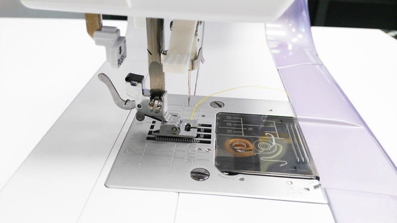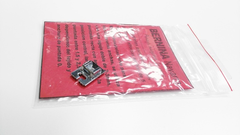 Este prensatelas o suela sirve para hacer jaretas anchas, se utiliza con una aguja doble de 2 a 3mm, puntada recta con la aguja en la posición central, largo de puntada entre 1,5 y 2,5mm, dependiendo del tejido, y anchura de puntada 0.