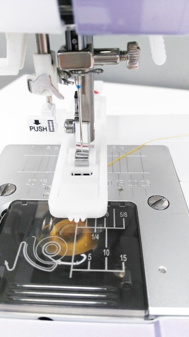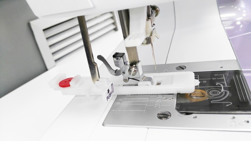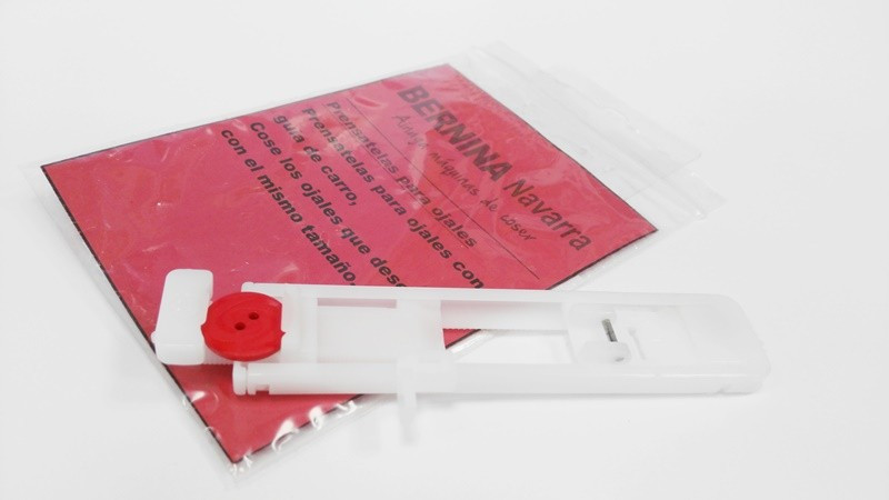Prensatelas para hacer ojales con guia de carro. Colocas un botón y automaticamente y en un solo paso con la guia cose los ojales que desees con ese tamaño.