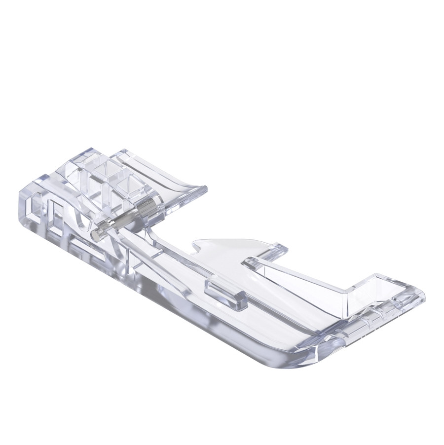 El prensatelas estándar transparente de Bernina es idóneo para trabajos de costura generales y ofrece una buena visión sobre la costura y el tejido para un cosido más preciso, por ejemplo, de esquinas y redondeos.