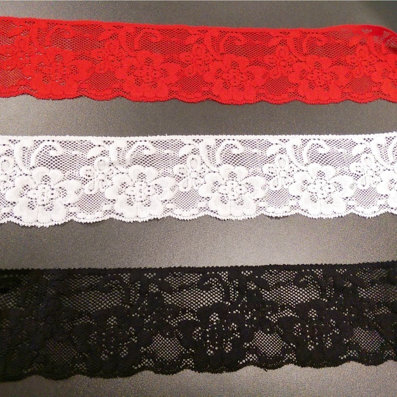 Puntilla Elástica Raschel Negra de 70mm