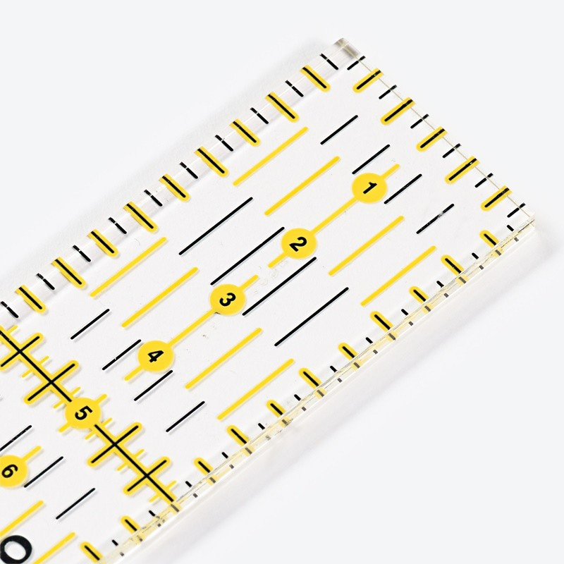 Ya sea en la mesa de corte o en la máquina de coser: las reglas universales Omnigrid de Prym son compañeras indispensables para patchwork, corte y confección, o para trabajos gráficos. Las marcas de cuadrícula amarillas y negras en una escala métrica o en pulgadas permiten marcar con precisión en telas oscuras y claras. La impresión láser resistente a los arañazos en la parte inferior de la regla evita la distorsión visual. El material grueso, resistente y duradero garantiza un guiado seguro de las cuchillas giratorias y las cuchillas artísticas en la estera de corte. Algunas versiones de las reglas Omnigrid también tienen marcas de ángulo de 30, 45 y 60 grados para cortar triángulos, diamantes y tiras en el sesgo. Para mantener las cosas ordenadas, se puede colgar por el ojal.