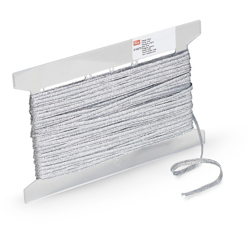 ¡Esto le dara a la ropa, bolsos, cojines y accesorios un toque brillante! El ribete o vivo en plata u oro brillante es adecuada para coser recortes o como bordes. Con un alto contenido de lurex en la mezcla de materiales y en un hermoso ancho de 6 mm, tambien compite habilmente con disfraces o gala festiva.