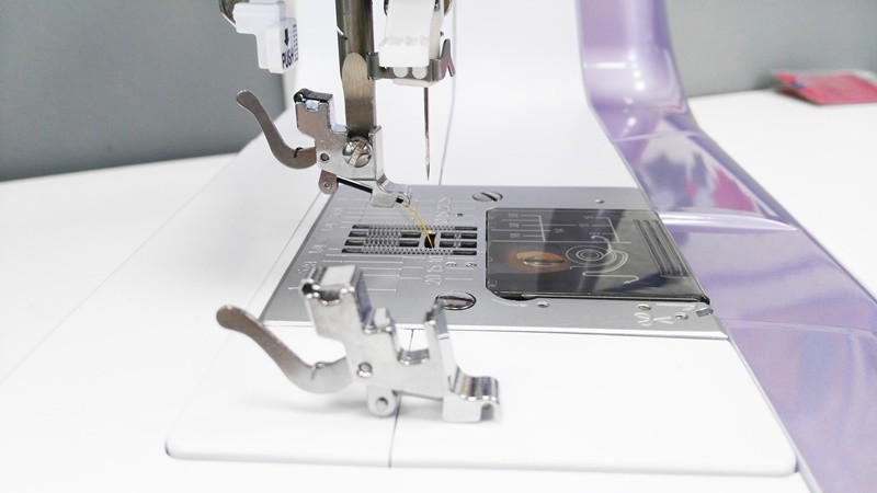Con este accesorio o soporte puedes adaptar tu máquina y así poder usar cualquier suela para máquina doméstica. Este soporte en su base tiene dos pequeñas hendiduras que permiten colocar el tubo que llevan las suelas y con el gatillo que hay en su parte posterior, soltar las suelas y meterlas con total comodidad.