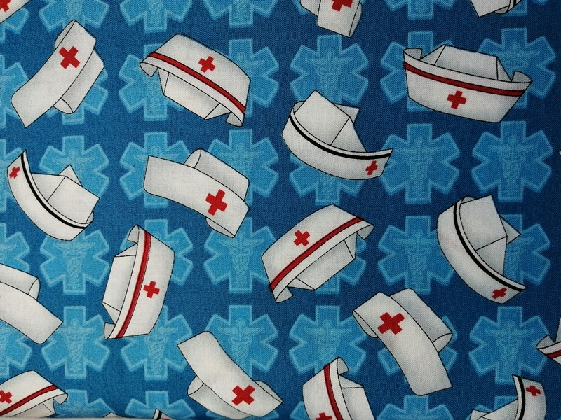 TELA AZUL CON GORROS SANITARIOS 0036