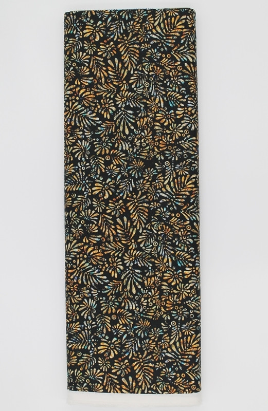 TELA ESTAMPADO HOJAS FONDO NEGRO 0417
