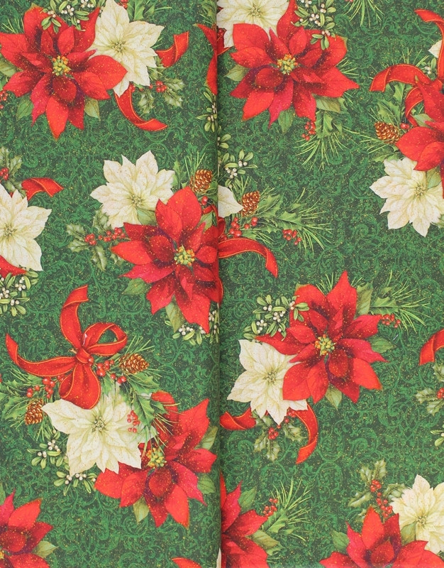 TELA FLORES DE PASCUA VERDE 0291