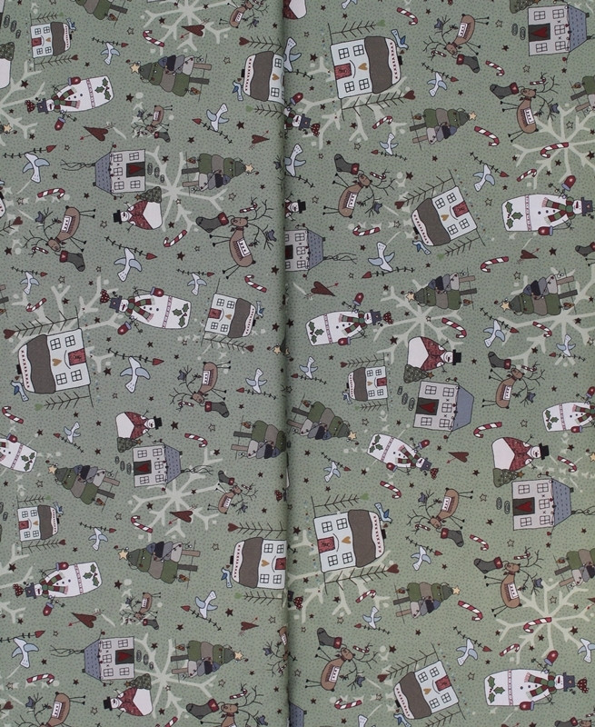 TELA MUÑECOS DE NIEVE VERDE 0294