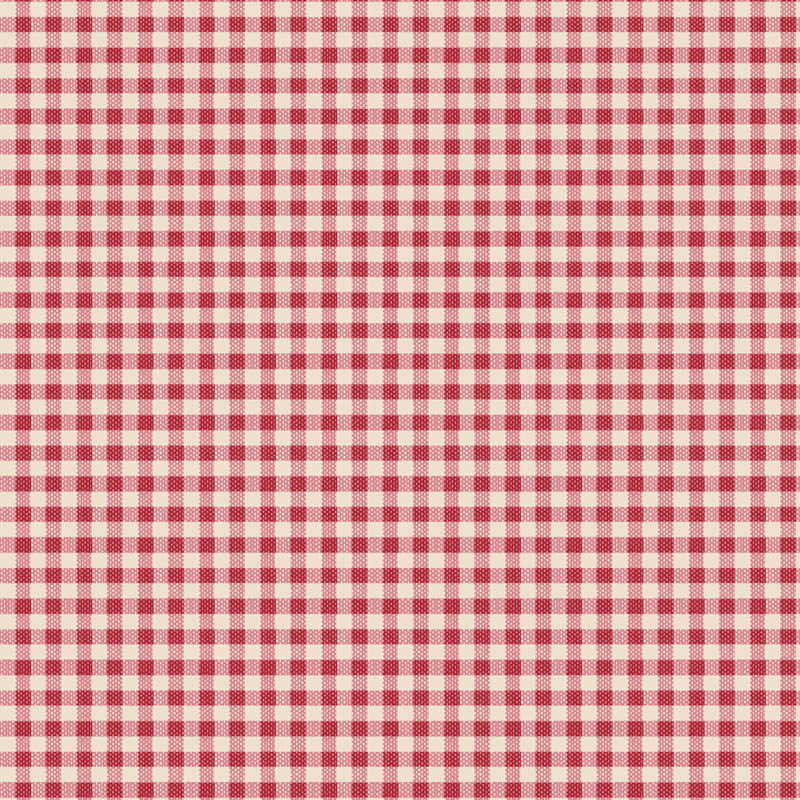 La tela Tilda Gingham Red presenta el clásico estampado de cuadro vichy en tono rojo, un diseño atemporal que aporta un aire fresco y acogedor a tus proyectos de costura.