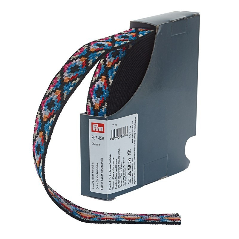 La variedad de diseños de las bandas Color Elastic da rienda suelta a la creatividad. Las bandas elasticas de colores de Prym son muy decorativas en telas de jersey, tales. B. en pantalones de jogging. Como puños de pantalon o falda, las bandas tambien son atractivas para la vista. Alpargatas, bolsos, fundas para telefonos moviles y mucho mas se pueden personalizar con medios simples y mucho mas, lo que resulta en un efecto elegante. Cada idea artesanal se puede actualizar, por ejemplo. Como imagenes, marcos de cuadros, tarjetas de invitacion o brazaletes. Las bandas elasticas de colores con patrones atractivos estan disponibles en diferentes anchos de 25 mm y 50 mm. La banda elastica es lavable hasta 30 grados.