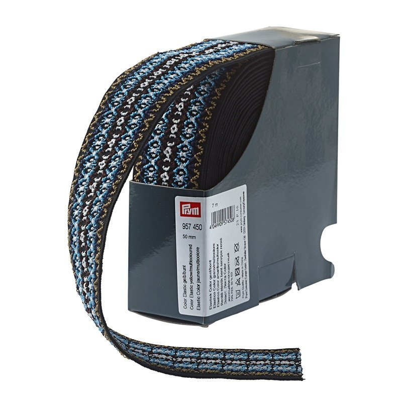 La variedad de diseños de las bandas Color Elastic da rienda suelta a la creatividad. Las bandas elasticas de colores de Prym son muy decorativas en telas de jersey, tales. B. en pantalones de jogging. Como puños de pantalon o falda, las bandas tambien son atractivas para la vista. Alpargatas, bolsos, fundas para telefonos moviles y mucho mas se pueden personalizar con medios simples y mucho mas, lo que resulta en un efecto elegante. Cada idea artesanal se puede actualizar, por ejemplo. Como imagenes, marcos de cuadros, tarjetas de invitacion o brazaletes. Las bandas elasticas de colores con patrones atractivos estan disponibles en diferentes anchos de 25 mm y 50 mm. La banda elastica es lavable hasta 30 grados.